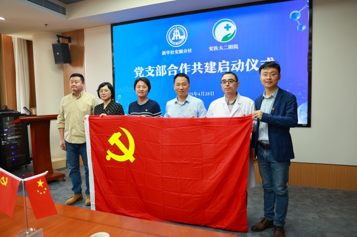 二附院党委书记周典就医院党建工作、人才队伍建设、医疗及科研发展成果等基本情况作了简要介绍。他表示,此次党日共建活动是对医院和新华社安徽分社深厚友谊的回顾总结,更是对未来双方关系的全面提档升级。在健康中国建设的新征程上,期待双方共同谱写“医媒联动”新篇章,为健康安徽建设作出更大贡献。