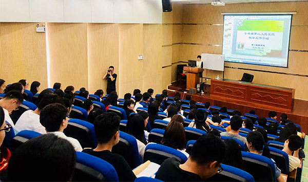 邢桂玫首先介绍了省二院近几年的发展情况,向大家详细说明了今年临床见习过程的工作安排、注意事项、考勤纪律以及考核表彰。讲座中,邢桂玫以 “三个圆圈” 的表达方式使大家意识到,在见习过程中一定要问清楚问明白指导老师布置的具体任务后再去执行。此外,邢桂玫还抛出 “一碗米有多少价值?” 的问题发人深省,她借此向大家阐释每个人最初都是一碗米,通过后天的打磨才能提升自身的价值,希望大家在见习的这三个月都能有所收获;最后,她播放白岩松的演讲视频《医学与医德》,提醒同学们在临床见习中应给予病人关爱和希望。