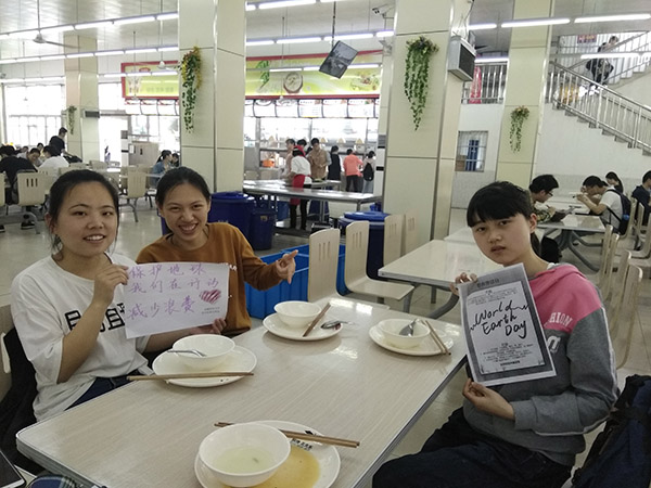 随后,志愿者们三五成群,手拿垃圾袋,清捡教室和校园里的垃圾,美化校园环境。一部分志愿者深入食堂、宿舍采访师生对世界地球日的了解以及对保护地球的建议。还有志愿者们组成 “绿色车队”,开展了骑行活动,践行绿色出行、低碳生活的环保理念,做生态文明的实践者和推动者。