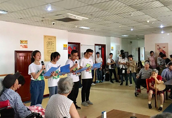 心灵使者 关爱老人心理健康。这一天的护理院,一改往日安静的样子,院里院外,都充满欢声笑语与活力。有的同学陪伴在老人家身边聊天解闷,有的同学在院子里陪老人家下象棋,更有大家精心准备、自编自导自演的 “情系老人,让爱绽放” 文艺汇演特别节目献给每一位老人家,学生会社实部的小品《家有老爸》、学习部的舞蹈《维舞》、文艺部的二胡合奏《乱红》以及宣传部的太极拳表演等 10 余个节目引发大家一阵阵掌声…… 同学们在娱乐中帮助老人排解烦恼、传递快乐,老人们在感受到温暖之余,也意识到自身心态调节对健康的重要性。