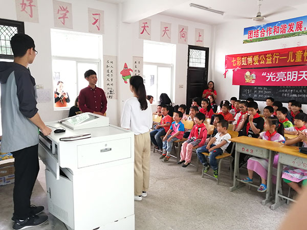 在当地学校老师的热情接待之下,众创协会成员利用提前准备好的课件,开始了儿童性教育课程的教学。本次课程主要针对青春期生理卫生知识、青春期心理健康知识和面对不法分子侵害时儿童的自我保护方法等方面进行详细的讲解。课堂上,协会主讲老师以生动的讲课方式带动了同学们的热情,孩子们踊跃发言,整个课堂气氛非常活跃。尤其是互动环节,通过演绎一个小童话,告诉了孩子们当遇到危险时什么样的行为算是侵犯行为以及对应的方法。讲课结束后,志愿者给孩子们分发了六一儿童节礼物,为孩子们送去了温暖的祝福,并鼓励他们要勇敢地对侵害自己的坏人说不。