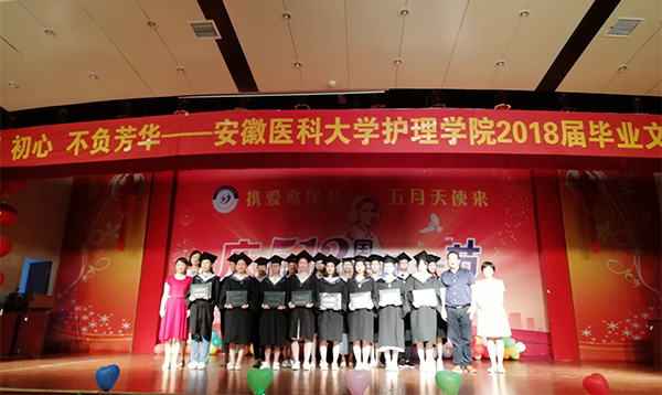 6 月 22 日晚,护理学院在南校区多功能报告厅举办了 “护‘你’初心,不负芳华”2018 届毕业生离校晚会,护理学院党委书记赵云峰、副书记沈慧和学院师生欢聚一堂。