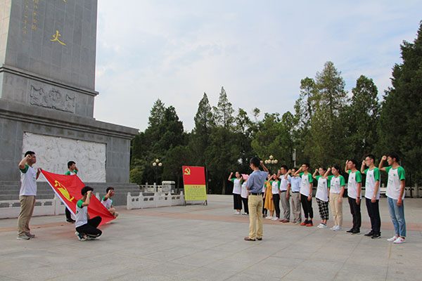 7 月 26 日下午,队伍走进金寨县革命博物馆,瞻仰着一件件红色革命历史文物及图片,静静地聆听着一个个感人的历史故事,目睹红军战士们那一张张略显稚嫩脸庞的照片,一件件发黄的遗物,队员的心灵一次又一次的被荡涤被震感。金寨的红色基因融入一个个红色的故事,构筑起不朽的历史丰碑。