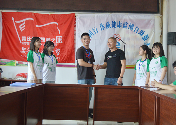 第三站:部分师生代表与乡卫生院的负责同志进行了座谈,活动指导老师就此行的收获及该院学生教育培养、就业考研等做了简要介绍;卫生院负责同志介绍了卫生院、村卫生室的发展状况。最后,团队就 “互联网 +” 大赛 “青年红色筑梦” 之旅项目与盛堂乡卫生院签订了合作框架。会后,团队成员参观了汇集安徽南北建筑风格、苑内构造别具一格的明清苑;借助 “互联网 +” 技术打造成具有花园特色的智慧型 “花园小镇”。此行也为团队接下来的“互联网 +” 大赛 “青年红色筑梦” 之旅项目的后期工作开展提供了启发和借鉴。
