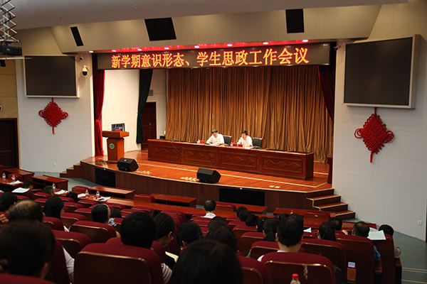 9月5日下午,学校在图书馆第一报告厅召开新学期意识形态和学生思想政治工作会议,学习贯彻全国宣传思想工作会议精神,分析研判形势,安排部署新学期意识形态和学生思想政治工作工作。校党委书记李俊出席会议并讲话,会议由校党委副书记刘群英主持。
