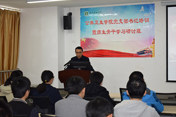 11月8日下午,公共卫生学院2018年党支部书记培训暨师生骨干学习研讨班开班。校党委组织部部长、党校常务副校长李阳新应邀参加开班式并作首讲,公共卫生学院党委书记宋玉梅作开班动员讲话。