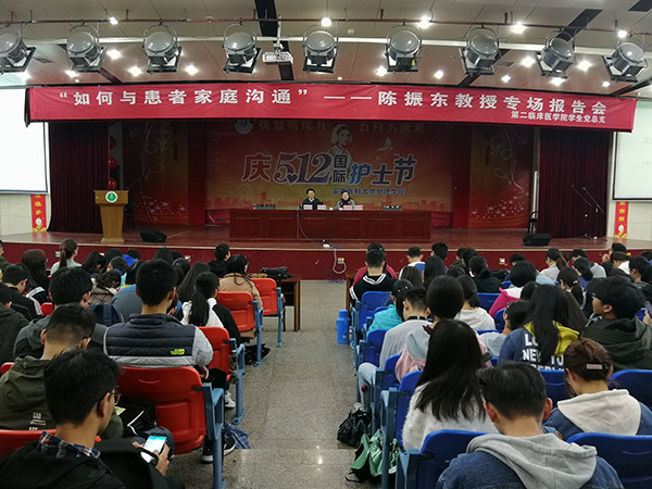 11月6日晚,第二临床医学院学生党总支邀请校关工委副主任、原第二附属医院副院长陈振东教授为在校生作“如何与病家沟通”主题报告,学生党总支书记黄朝晖主持报告会。