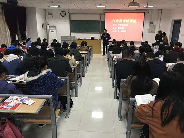 11月7日、8日晚,校毕业生就业指导中心邀请政道公考分别在梅山路校区11401教室、翡翠校区1301教室举办了两场公务员考试讲座。