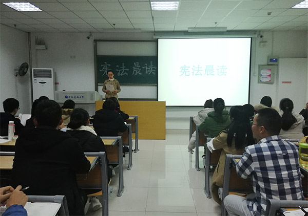 召开主题班会,尊崇宪法。各小班围绕“弘扬宪法精神”开展主题班会,认真学习了宪法的结构和地位、宪法的制定和修改程序、国家宪法日的由来等内容。随后,大家结合时事新闻、典型案例展开热烈讨论,阐述了宪法与每个人的密切关系及自己对“宪法精神”的理解。同学们纷纷表示当代大学生作为祖国的未来和社会的骨干,需自觉把宪法作为从事各种社会活动的最高准则。