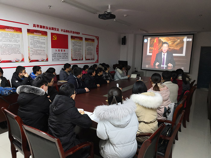 组织学生党员集中收看国家主席习近平发表新年贺词视频,感受领袖对人民深沉而绵长的牵挂和挚爱。习近平主席的讲话,朴实而接地气,深情而有力量,他深刻阐述了过去一年国家的重大举措和重大收获,将大家的情感辐辏于为梦想打拼的每一个场景,让我们同国家的发展进步共情共鸣,同时也为每个人指明了新方向,提出了高要求。院党委书记宋玉梅希望党员同学深刻领会主席新年贺词精髓,把责任扛在肩上,用行动诠释初心,新的一年继续努力奔跑,做新时代的追梦人。