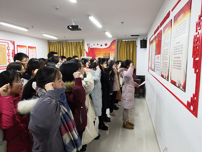预备党员与全体老党员一起面对鲜红的党旗,庄严地举起右手,向党旗宣誓,表达了为共产主义事业奋斗终身的决心。宣誓仪式结束后,全体党员开展交流,畅谈新年目标和计划。低年级党员表示新的一年,将接力奔跑,继续奋斗,制定计划,进一步推进支部学风建设;部分学生党员还表示时代在变,青年的使命也在变,将站在新时代的起点上,做心怀责任勇于担当的新时代青年;毕业班党员则表示作为一名医学生,初心就是要把知识学好,为基层老百姓服务,将个人梦融入到中国梦,服务国家发展需要。