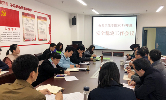 3月25日上午,公共卫生学院召开2019年安全稳定工作会议,部署全年安全工作,筑牢创新发展基石。院党委书记潘莉莉出席会议。院长江启成主持会议。