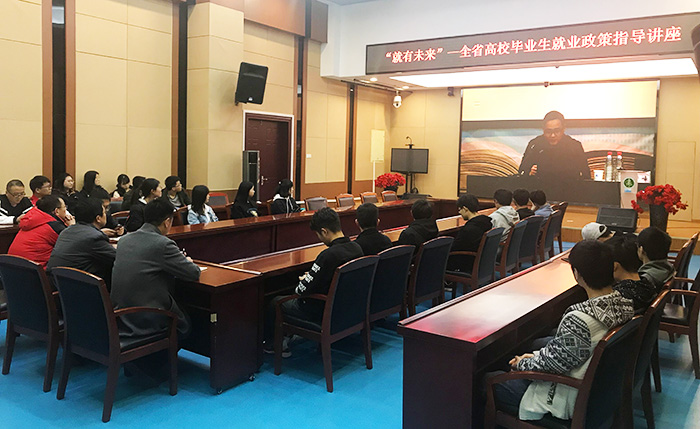 3月27日下午,学校在知行楼一楼会议室组织观看由省人社厅、教育厅联合举办的“就有未来”——全省高校毕业生就业政策指导讲座网络直播。
