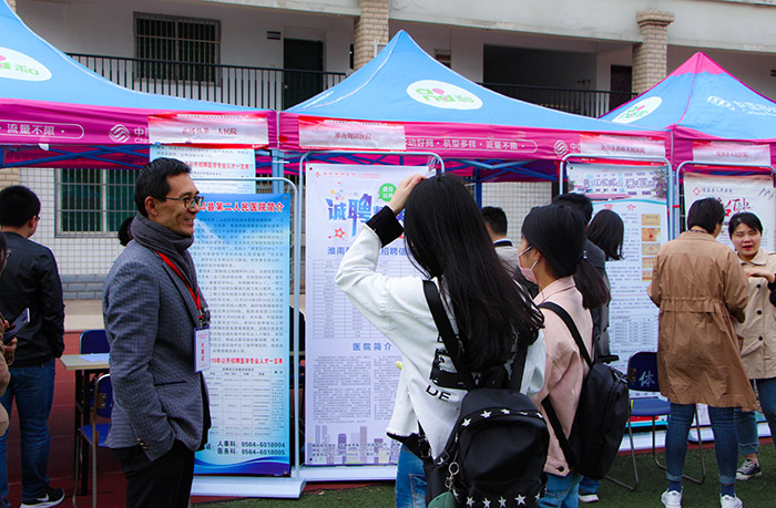 本次就业市场是学校认真贯彻落实教育部、省教育厅关于进一步做好毕业生就业创业工作的部署和要求,切实做好把“稳就业”放在更加突出位置的一项重要工作。围绕“服务安徽,面向基层”主题,以学生就业需求为前提,校毕业生就业指导中心和各学院精心筹备、组织,广泛开辟宣传途径,充分挖掘和利用校友资源,邀请了来自省内外的99家单位,共提供2600余个用人岗位。其中,85%用人单位来自省内,县级医疗单位占用人单位总数的75%,岗位需求涉及全校各个专业,为毕业生提供了求职就业的广阔平台。
