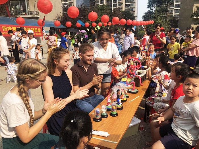本次活动内容丰富,来自德国、柬埔寨、加纳等国的国际学生被现场所悬挂的100盏大红灯笼和滨湖社区邻里街坊们做的拿手中国菜所吸引。合肥市面人非遗传承人也来到活动现场为大家表演、讲解,并教现场群众一起捏面人。国际学生也亲自动手体验,在老师的指导下成功做出了自己的面人作品。