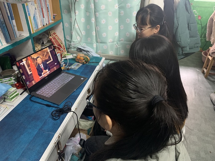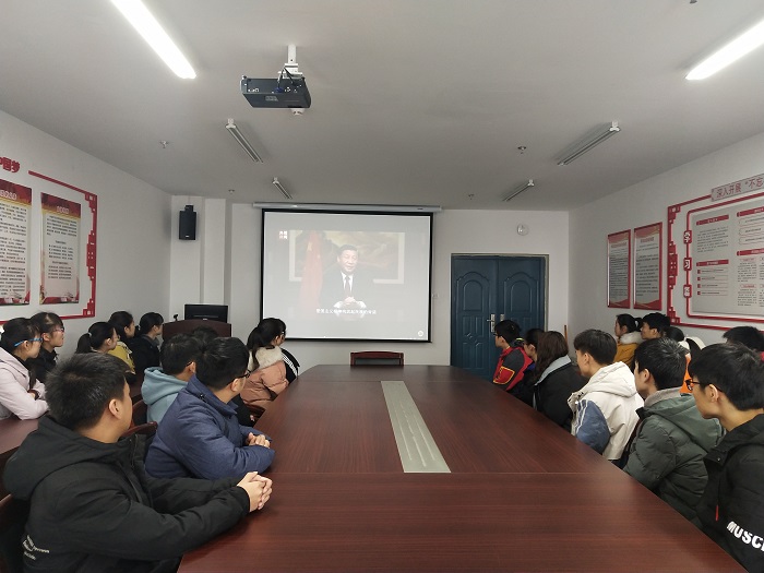 1月1日,学生党员、入党积极分子分批次观看了习近平主席新年贺词,其余同学或在食堂、寝室等地收看贺词转播,或通过手机阅读文字版新年贺词,共同感受祖国踏浪前行的奋进力量,凝聚起冲锋决胜的发展信心,更加坚定地向着全面建成小康社会前进。习近平主席的贺词在全院师生中引起了热烈的反响。