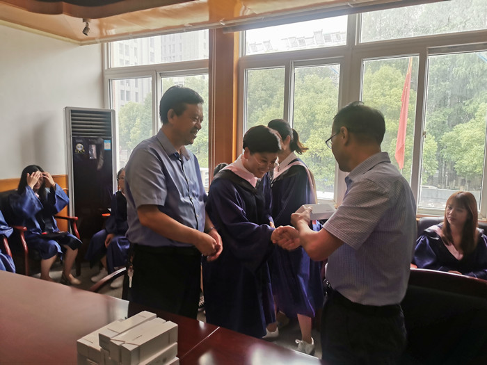 会后,李绍华和陶芳标向毕业研究生赠送学院特别定制的纪念品。与会毕业研究生纷纷表示感受到了学院的关心,未来在新的工作岗位上将不忘母校教导,为母校争光。