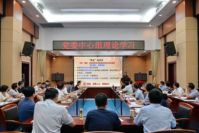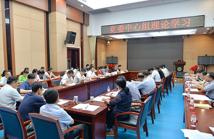 7月2日下午,学校召开党委中心组理论学习会,校党委中心组组长、校党委书记顾家山主持会议。校长曹云霞,校党委副书记刘群英,副校长余永强、肖圣龙,校纪委书记黄新美及校党委中心组全体成员参加会议。