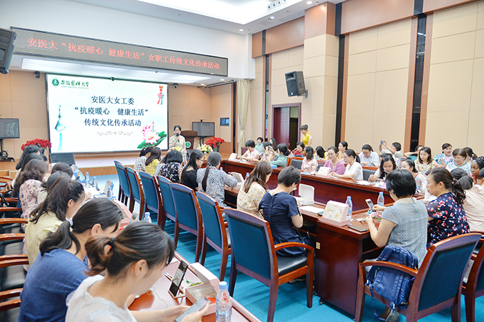 7月8日下午,学校开展“抗疫暖心、健康生活”女职工传承传统文化系列活动,大力弘扬中华优秀传统文化,引导女职工们感受传统文化魅力,提升自身内涵素养,正确缓解压力,健康生活。