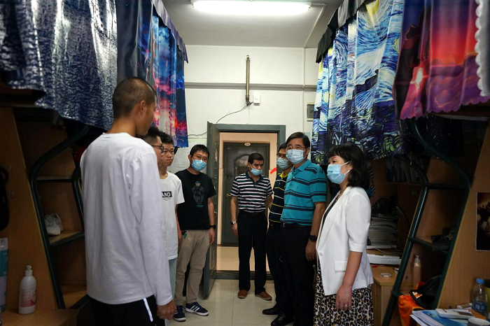 全院齐心,全面做好返校后各项工作。8月3日,该院领导班子走访学生宿舍并与返校学生进行了亲切交流。走访过程中,院领导询问了同学们在疫情防控期间居家情况和返校后的心理、生活状况,提醒同学们按时测量体温、多开窗通风、勤晒被褥,同时勉励大家积极调整好心态,尽快进入学校学习状态。该院辅导员围绕疫情防控、返校后学习科研安排、实习生实习等问题与学生进行了交流,并分批次为学生进行培训,带领学生学习了我校学生行为准则,要求学生干部按照返校方案落实好各环节工作,按时上报身体健康情况,坚持做好疫情防控日志,做到台账清晰、动态准确;落实落细晨午晚检制度,利用新媒体等手段进行晚点名。