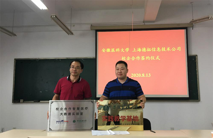 8月13日上午,学校与上海德拓信息技术股份有限公司进行校企合作签约仪式。生物医学工程学院执行院长钱海生、副院长朱华庆,德拓集团副总裁兼教育事业部总经理张飞、教育事业部销售总监王治栋、安徽竞拓信息科技有限公司总经理陈竹秀等出席仪式。