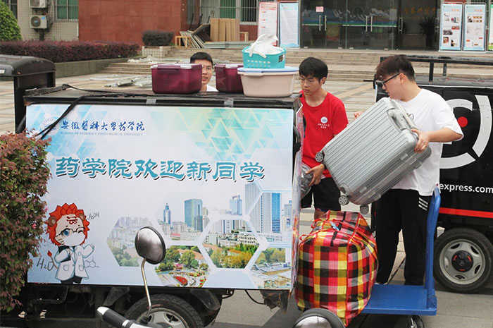 关怀相伴,用暖心迎接新生。迎新当天,该院领导不时深入报到现场,了解新生报到情况,与新生亲切交谈,“温暖、贴心”服务,让他们在学校仍能感受家的温暖。学院“小药狮”青年志愿者服务队,身着统一服装,全身心一对一服务,在学院报到点、学生公寓楼下搭建党员示范岗和志愿者服务台,热心帮助新同学引导报到、扛包裹推行李、采购生活用品、悉心介绍学校学院情况等。志愿者们笑容亲切,行动贴心,给新生带去安全感和归属感,成为校园里一道亮丽的风景。