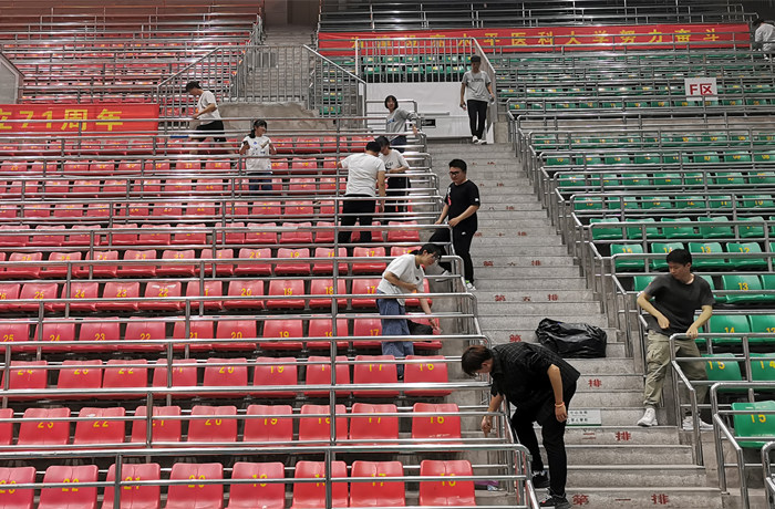 一批批新生怀揣初入校的兴奋,在军训刚刚结束的激情回忆和喜迎国庆校庆佳节的喜悦情绪中,在体育馆内捡空瓶、擦凳子、清运垃圾。参与学生表示,这是一次充满意义的劳动教育,大家在忙碌中共享劳动带来的快乐,增强了努力做德智体美劳全面发展的大学生的信心与决心。