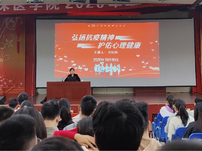 10月10日,时值第29个世界精神卫生日,第二临床医学院学生党总支副书记余皖婉为该院师生作《弘扬抗疫精神 护佑心理健康》专题讲座,以进一步弘扬伟大抗疫精神,提升师生精神卫生和心理健康意识。该院全体辅导员及400余名学生聆听报告。