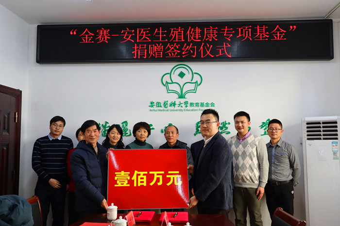 1月13日下午,校教育基金会与长春金赛药业有限责任公司在敏行楼三楼会议室举行“金赛-安医生殖健康专项基金”捐赠签约仪式。校教育基金会理事长孙爱和致辞,并与金赛药业共同签署捐赠协议。