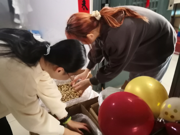 年货推车送祝福。除夕当天,该院党总支有关领导带领毕业班辅导员,推着满载花生、瓜子、小糖等小食年货的小推车,挨门挨户走进每间留校学生宿舍,给所有留校学生分发食品,送去美好祝福。老师们的到来让同学们倍感兴奋,他们向学校和学院的关心表示感谢,并积极同领导和老师交流,汇报实习和就业情况。大家其乐融融,略显冷清的宿舍公寓中欢声笑语,充满了的祥和喜庆的气氛。
