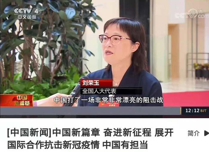 两会期间,刘荣玉认真履行职责,积极参政议政,其相关建议引起了与会代表、委员的热烈讨论和媒体的广泛关注,多家中央、省级媒体对其作了采访报道。接受中央广播电视总台中文国际频道(CCTV-4)《中国新闻》栏目采访时,她表示:“这次新冠肺炎疫情,中国打了一场非常非常漂亮的阻击战,向整个国际社会都显示了中国特色社会主义制度的无比优越性。去年的两会就已经开始重视并且呼吁建立更加完善的公共卫生体系。(现在)整个疾病的预防控制都已经有了很大提升。”