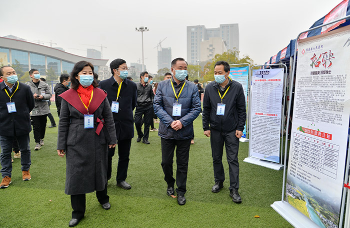3月20日,2021年安徽省医药类高校毕业生就业市场暨学校春季毕业生招聘会在我校梅山路校区体育场举办。校长曹云霞、校党委副书记刘群英、副校长肖圣龙来到现场,与用人单位和广大毕业生亲切交谈,了解用人单位需求和学生的求职意愿。安徽省大中专毕业生就业指导中心主任袁江林来校作现场指导。