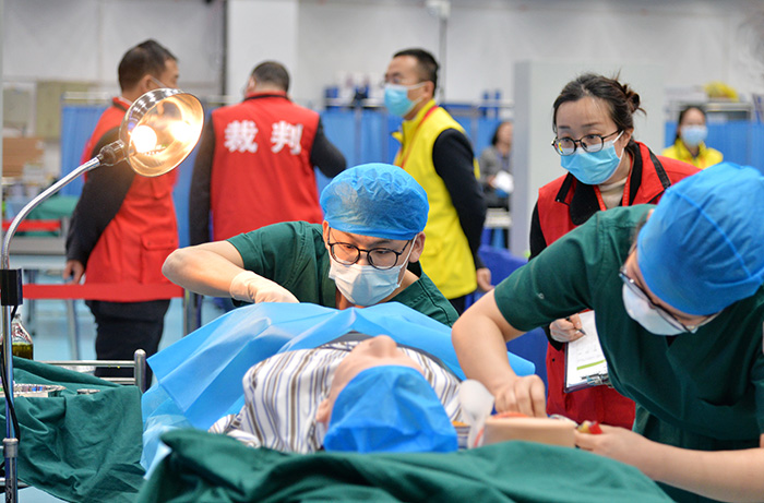 本次竞赛分初赛、复赛、半决赛、决赛四个部分,分别采用多站式、赛道式、单站式进行,考核内容覆盖内科、外科、妇产科、儿科、急诊医学、感染病学、诊断学、基础护理学等临床多个学科,均采用仿真模拟教学模型和标准化病人,高度贴近真实临床情景,以此全面考核医学生的素质、知识、能力以及医学人文和团队合作精神。