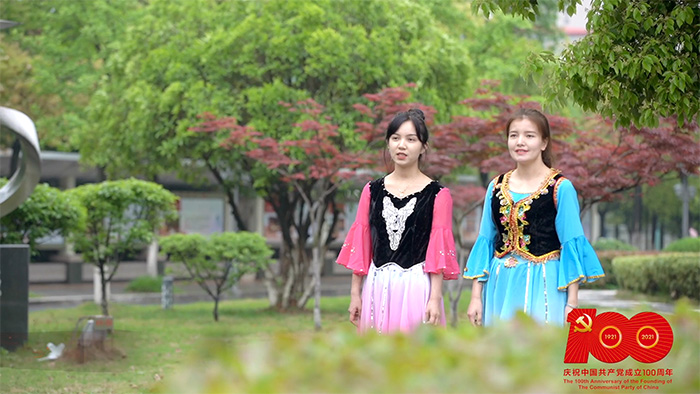 来自校本部和南校区的300余名青年学子参与其中,大家用嘹亮激扬的声音,饱含真情地唱出了中国共产党百年来的丰功伟业,真切表达了“永远跟党走”的坚定信念。我校少数民族学生也积极踊跃参加了演出,他们身着民族服饰、齐声高歌,表达了爱党、爱国、爱社会主义之情。