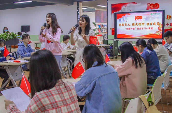 “唱支山歌给党听,我把党来比母亲……”“不忘初心,继续前进,万水千山最美中国道路……”近日,校学生事务中心活动室内歌声嘹亮,由国家资助宣传大使及奖助学金获得者代表参加的“弘毅计划”党史学习小课堂正在如火如荼进行。