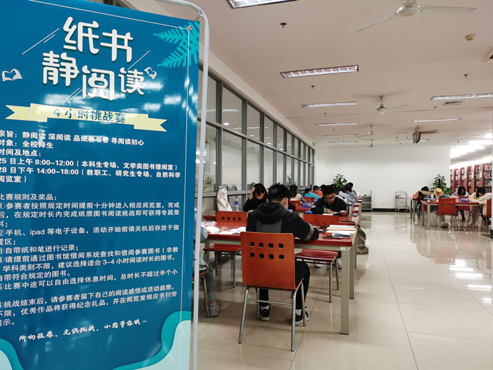 高校图书馆具有阅读推广的重要职责,图书馆将以此活动为契机,继续创新阅读推广模式,促进纸质书刊的借阅,推动全民阅读。(图书馆 赵烨)