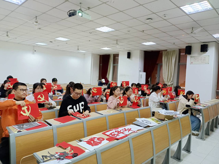 “一把剪刀、一支铅笔、一张红纸,一画一折一剪中,一幅幅带着对党深厚情意的精美作品就制作完成了,再聆听一段党史小故事,这些剪纸就如同灵动的红色胶片,把党的故事印在了心里,我很喜欢……”大学生手工爱好者协会“红色剪纸‘绘’红心”主题团日后周春泥同学说出的感受。