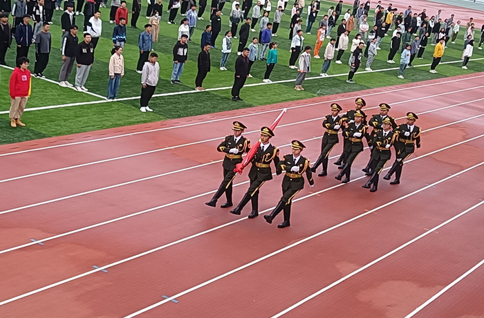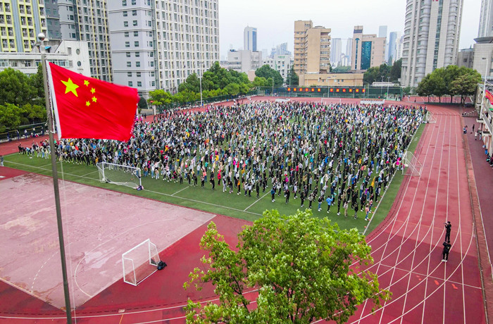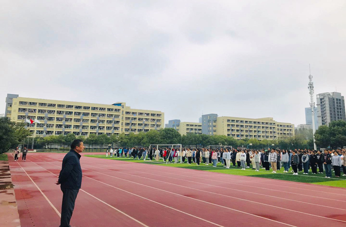 10月11日清晨,学校2021级3800多名新生分别在梅山路校区、翡翠路校区、东校区运动场开启新学期升国旗唱国歌仪式和早锻炼晨读活动,副校长肖圣龙现场进行指导。
