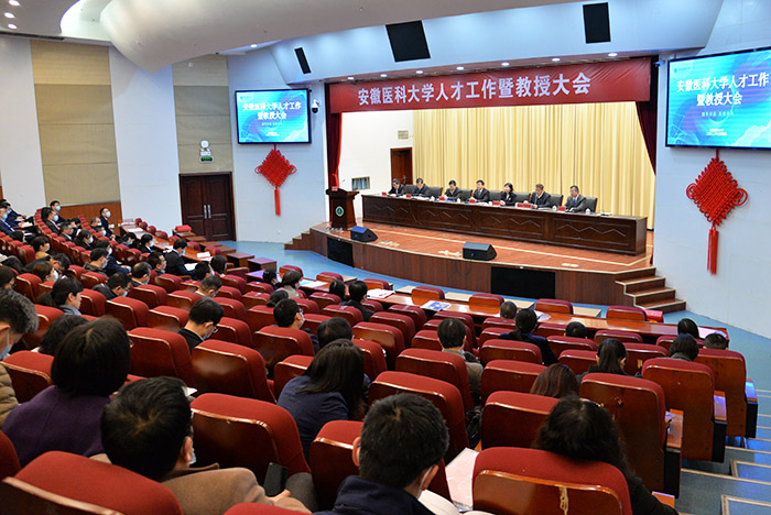 3月4日上午,我校在图书馆第一学术报告厅隆重召开人才工作暨教授大会。会议深入学习贯彻习近平总书记关于人才工作的新理念新战略新举措和中央及省委人才工作会议精神,聚焦国内一流高水平医科大学建设目标任务,按照学校第八次党代会具体要求,总结成绩、分析形势,并就当前和今后一个时期学校人才工作重点任务进行部署。校党委书记顾家山出席会议并讲话,校长曹云霞出席会议并作人才工作报告。校党委副书记刘群英宣读聘任文件,副校长余永强主持会议。副校长梁朝朝、肖圣龙、吕雄文出席会议。