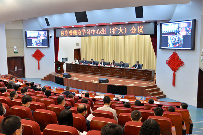5月10日下午,校党委中心组(扩大)在图书馆第一报告厅召开理论学习会,围绕习近平总书记在5月5日中央政治局常务委员会会议上的重要讲话精神,以及省委书记郑栅洁到我校调研时的重要讲话精神等内容开展专题学习,并观看了全国窃密泄密案例警示教育片。校党委中心组组长、校党委书记顾家山主持会议,全体在校校领导曹云霞、刘群英、梁朝朝、肖圣龙、吕雄文、黄新美出席。