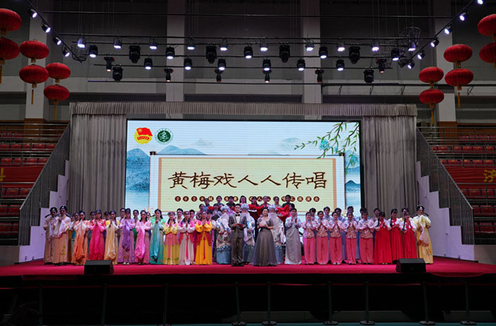 学校坚持校内与校外合作原则,实施校团合作、校地合作、校校合作,在2020级、2021级学生中开设黄梅戏戏剧曲艺知识理论课和教学实践课,参与人数5449人;组建黄梅戏爱好者协会,依托校园院线播放黄梅戏艺术电影3部;举办黄梅戏文化节,开展黄梅戏艺术专题讲座3次。在黄梅戏这个有着“中国乡村音乐”之称的非物质文化遗产的传承中,让安医学子近距离感受中华优秀传统文化的魅力。(大学生艺术教育中心 文/程琪 图/王超 张宸滈)