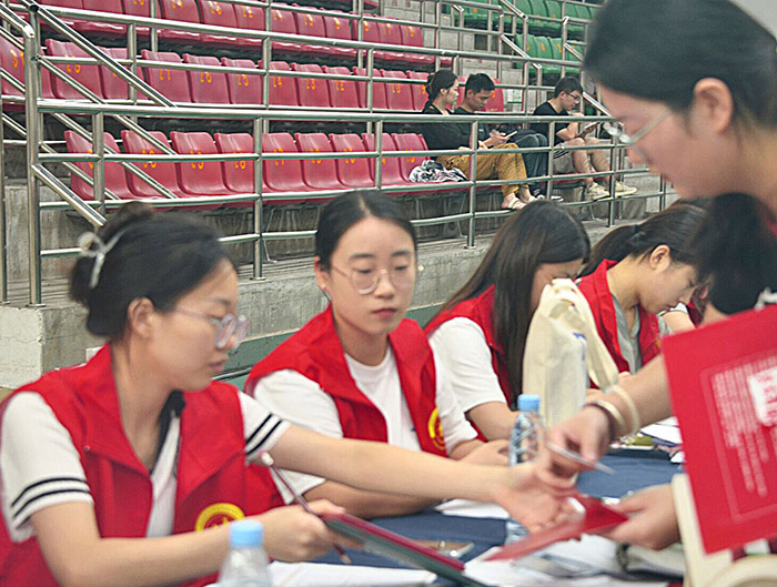 校园内,‌“欢迎新同学”的海报和标语随处可见,‌迎新氛围浓厚;各项工作有条不紊,‌迎新现场热闹非凡。研究生学院和各培养单位组成迎新团队,积极细致地为新生解困答疑,引导帮助其完成报到各项手续;学生志愿者活跃在校园各处,为新生和家长提供方便快捷、暖心周到的服务。学校还特别为报到新生家庭开辟专用车道,方便新生将行李运送至宿舍楼下。