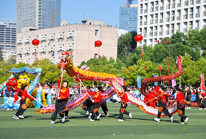 由人文医学学院、第二附属医院、校太极拳队和校舞龙队联袂表演的节目《龙狮舞韵 青春飞扬》将现场气氛推至高潮。龙鳞翻腾、狮影闪耀,太极剑和枪术刚柔并济、内外兼修,不仅展现了中华优秀传统体育文化的深厚底蕴,也展示了我校青年学子德智体美劳全面发展的激扬青春。