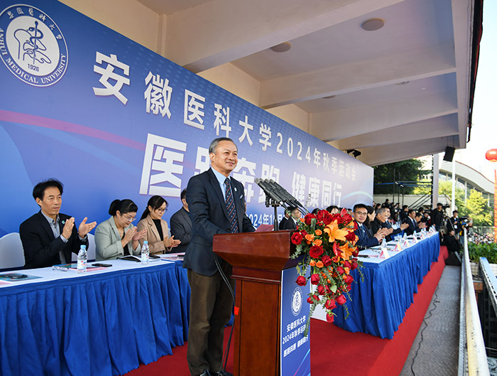 翁建平在致词中结合个人经历,以及神舟十九号航天员乘组“90后”女航天员王浩泽、“共和国勋章”获得者钟南山教授热爱运动的事例,说明了坚持体育锻炼的重要性,激励同学们认真上好每一节体育课、参与好所喜爱的体育活动,促进体育与成长成才同频共振。他同时希望全体运动员赛出风格,赛出水平,充分展现安医人的风采;全体裁判员和工作人员坚持“公平、公正、公开”的大赛原则,为运动员创造良好的比赛氛围;各部门、各单位协调联动,做好赛事组织工作,确保运动会顺利开展、安全有序。