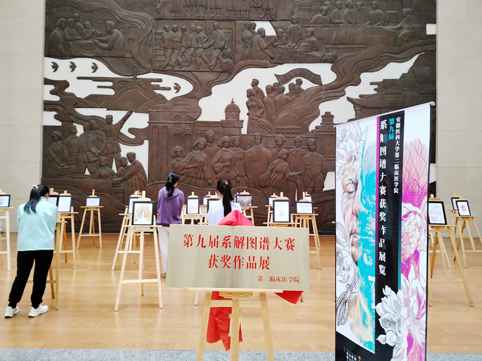 11月11日至14日,第二临床医学院以“绘就生命华章,筑梦青春医路”为主题,在梅山路校区图书馆一楼举办第九届系解图谱大赛获奖作品展。