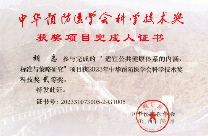 近日,我校卫生管理学院胡志教授参与完成的“适宜公共健康体系的内涵、标准与策略研究”项目,荣获中华预防医学会科技奖二等奖。