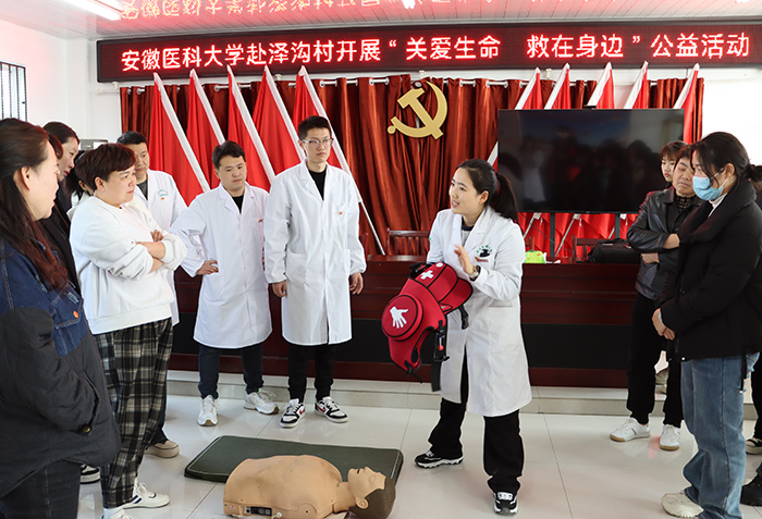 不仅将中小学生、社区居民、高校职工“迎进来”,实验教学中心的老师们也常常带着科普知识“走出去”。今年2月底,中心应急救护培训团队先后前往合肥市第五中学、第七中学和第八中学,开展春季传染病防治和应急救护知识技能培训,帮助学校师生提高卫生健康意识的同时,增强自救互救能力。