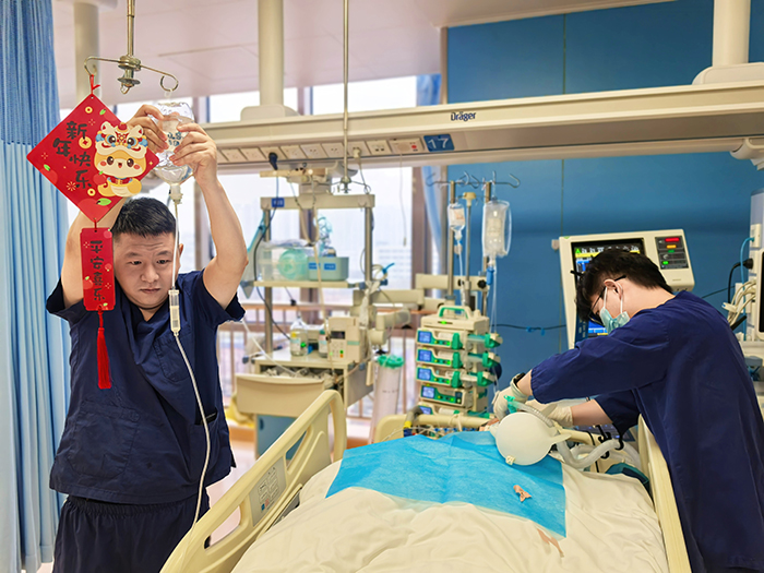 每逢新春佳节,普通病房往往会迎来一段相对安静的时光,但ICU却更为紧张忙碌,医护人员们步履匆匆,穿梭在各个床位间,时刻观察着患者的生命体征。“敬畏生命是我们每个人的必修课,守护生命是我们全部临床工作的终极目标”,科室负责人杨旻说,选择成为重症工作者,就要秉持“一切为了患者、一切为了生命”的信念,以足够多的爱与责任感,和时间赛跑,与死神博弈。