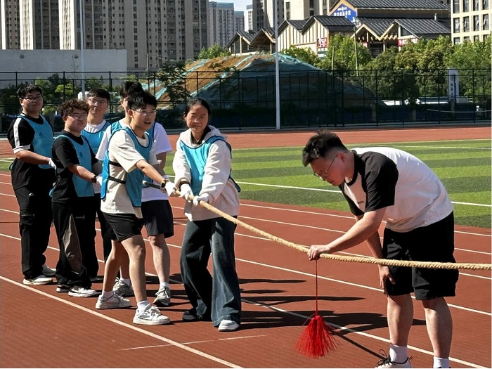 学院还匠心打造“运动解压实验室”,八大创意项目吸引超200人次参与。“两人三足”中师生组合默契闯关,拔河赛场上啦啦队声浪震天,“你画我猜”环节的生物医学专业术语引发阵阵欢笑。活动兼具趣味性与协作性,让学生积极参与体育锻炼,在欢声笑语中增强体魄,在轻松愉悦的运动体验中舒缓压力。