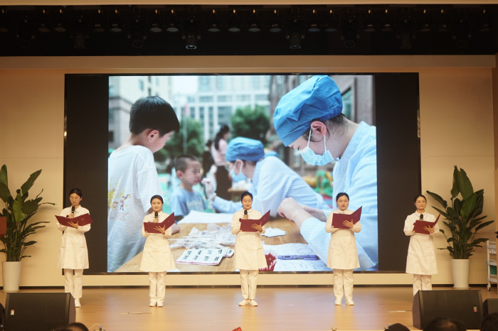 会上表彰了医院“十佳护士”、优质护理科室、第二届个案护理案例、9S管理标杆团队和个人,“十佳护士”代表发言。护理团队带来的诗歌朗诵《我心中的南丁格尔》、舞台剧《医者仁心,平凡天使》,展现了护理人员良好的精神风貌。